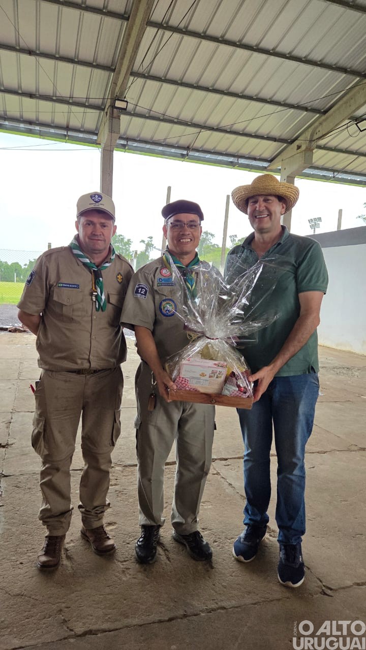 Pela manhã, no Centro de Convenções, o chefe estadual Adão Roberto, acompanhado da esposa, também integrante do movimento, e do chefe Eduardo Facco, do GE Mãos Unidas, apresentou à diretoria municipal a origem, metodologia e valores do escotismo, destacando princípios como respeito, responsabilidade, hierarquia, espírito de equipe e merecimento. Participaram do encontro o prefeito Zilio Roggia, a secretária municipal de Educação, Solania da Aparecida Popioleki Lira, a secretária municipal de Assistência Social, Mari Baldissera Pivetta, o presidente do GE Lagoa da Figueira, Gilmar da Silva, e demais membros da equipe diretiva.