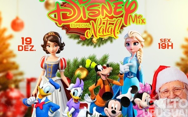O evento, marcado para as 19 horas, será realizado no ginásio de esportes. A apresentação “Disney Mix Especial de Natal” reunirá figuras queridas do público infantil, como Mickey, Minnie, Donald e princesas, em uma performance que promete emocionar toda a família.