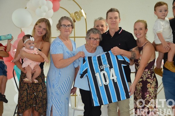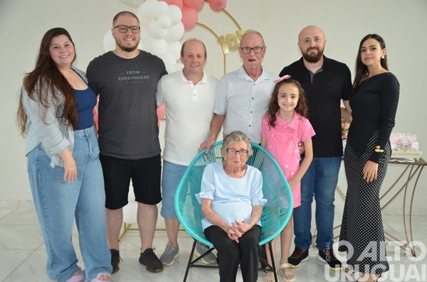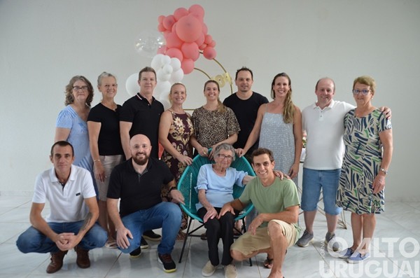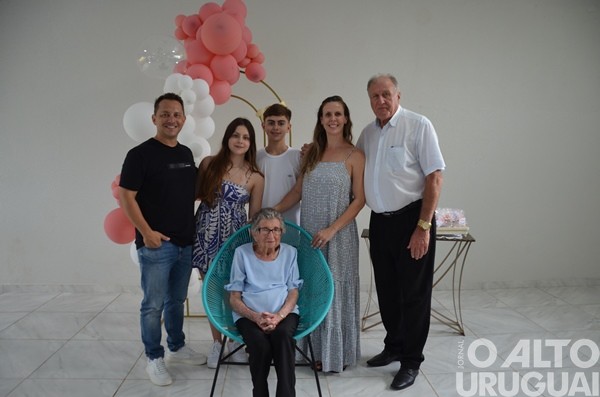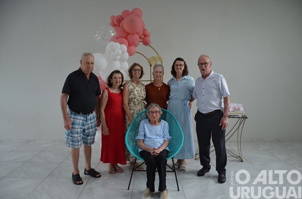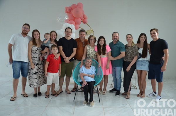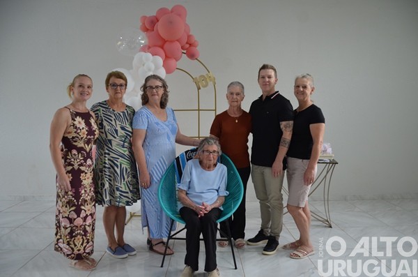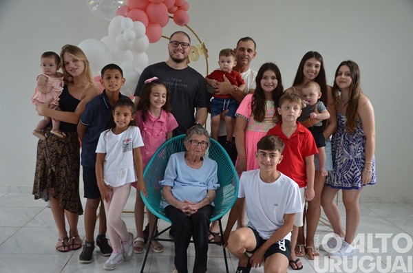 Cinco gerações da mesma família se reuniram no último domingo, 15, em Rodeio Bonito, para comemorar os 104 anos de Luzia Adams. A celebração marcou mais um ano de uma vida dedicada à família, à fé e à construção de vínculos. A matriarca construiu uma descendência que inclui nove filhos, sete deles presentes na festa, netos, entre eles a vice-prefeita Márcia Beatriz Vedana Duarte, bisnetos e tataranetos.